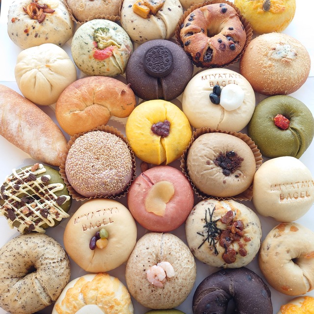<お得なおまかせ10個セット> MIYATAYAでは、沢山の種類の生地を作っております。 プレーン系、スイーツ系、デリ系のおすすめ商品をミックスで、彩りよく入れさせていただきます。そのままでも美味しく頂けますが、ご家庭でお好みにアレンジも可能です。 MIYATAYAのこだわりを是非、ご賞味くださいませ。 <ベーグル例> プレーン、甘酒、雑穀プレーン、チョコ&チョコ、キャラメルアーモンドクリームチーズ、ほうじ茶きなこラテ、ほうれん草のキーマカレー、こだわり3種のチーズ、沖縄黒糖ミルク、フルーツハウピア、チョコバナナココナッツ、キャラメルミックスナッツ、ブルーベリー&クリームチーズ、瀬戸内レモンクリーム、ほうじ茶きなこラテ、ダブルほうじ茶、チョコレートチャンク、宇治抹茶&こしあん、キャラメルアーモンド&クリームチーズ、ドライフルーツとグラノーラ、ティラミス・オレオ、ダブルクランベリー、ザクザクチョコクランチ、アップルシナモンシュガー、麦味噌ごぼう、醤油香る小松菜おかか、ごま坦々、ほぐし牛肉のビーフカレー、雑穀チーズカレー、釜揚げしらすチーズ、肉味噌なす、青のり塩、海老アボカド&クリームチーズ、ガーリックシュリンプ、生ハム&クリチ、オニオントマト、べーグルドッグ、ベーグルぎょうざドッグ、青じそ醤油クリチ、雑穀大葉チーズ、明太子ポテト、ピリ辛チキン、ジャーマンポテト、雑穀チーズ、たっぷりコーンシチュー、MIYATAYAソフト、全粒粉プレーン、ソイミルクプレーン、紅麹プレーン、ビーツプレーン、ほうじ茶プレーン、ほうれん草プレーン、ベーグルサンド etc... ・現在、注文殺到につきご用意でき次第の発送になります (3週間〜1ヶ月を目安に準備でき次第の発送) ・日にちの指定はできませんが、時間の指定は可能です (備考欄に配達日のご希望を記入いただいても承れませんので、ご了承ください) ・セットの内容はお任せの為、指定は承れません ・長期保存される場合、冷凍焼けや他の食品のにおい移りを防ぐためにラップに巻き直し、保存袋に入れて頂くとより美味しく保存できます ・クール便で配達いたします ・万が一、冷凍品が解凍された状態で届いた場合はお手数おかけいたしますが、宅配業者(ヤマト運輸)までお問い合わせ願います ・1回のご購入ではベーグル「20個」まででお願いいたします ・領収書はBASEの案内通り、お客様の決済方法によって出力をお願いいたします ・複数セットご購入の場合、ランダムのため、1~5つ被ることもございます